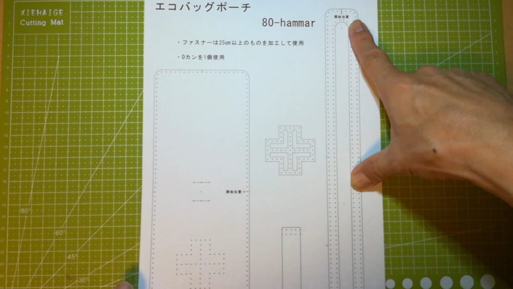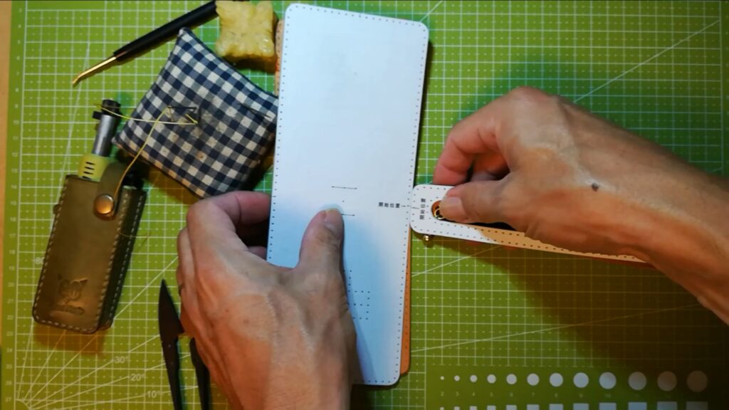 下記のように革に各開始位置の箇所に印をつけて分かるようにしておくと良いです。
