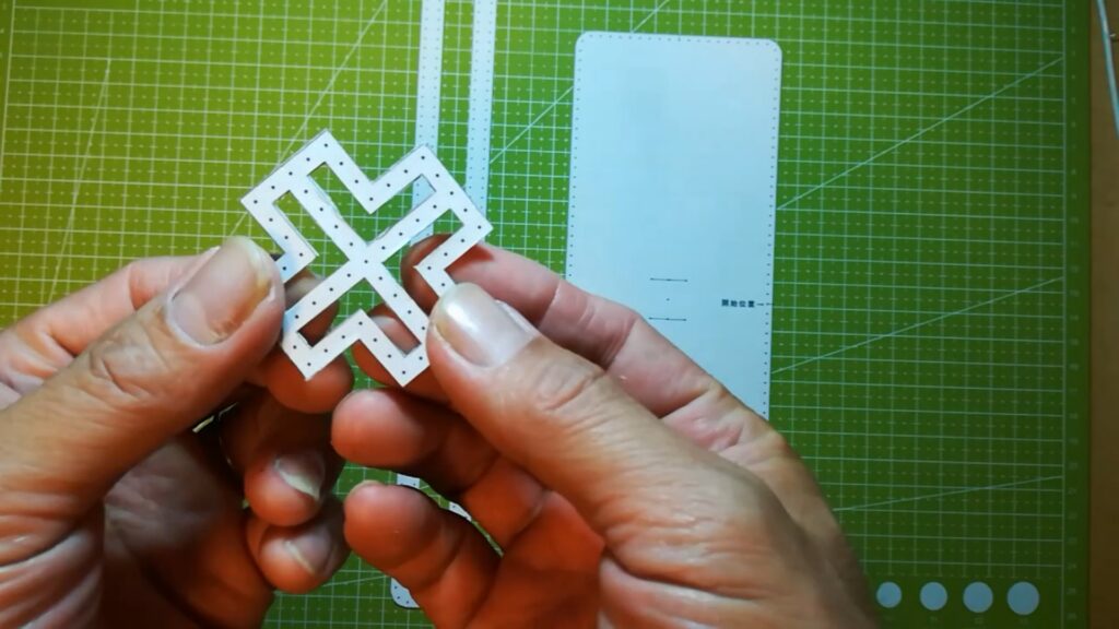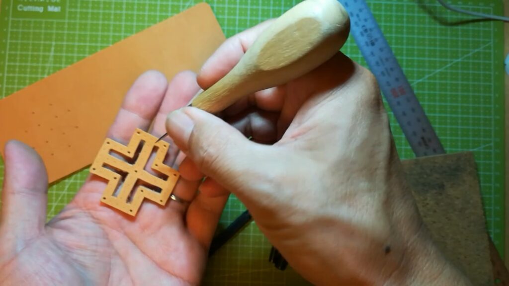 直線部分は菱目打ちで開けています。