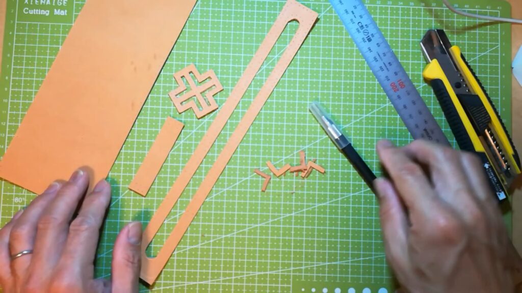 革にケガけたら革を切り出しパーツを作ります。