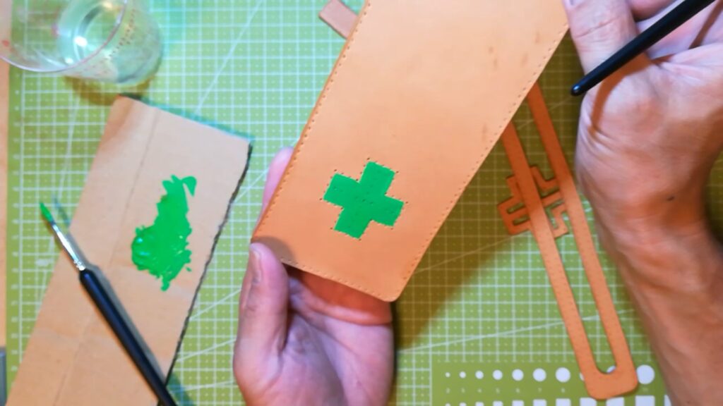 そして今回飾りの中の部分をアクリルガッシュというアクリル絵の具で緑色に塗りました。