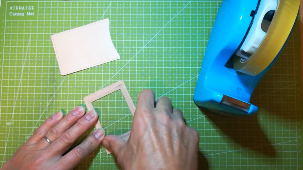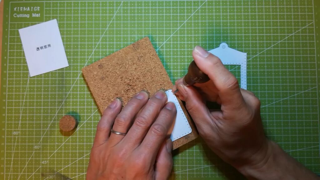窓枠の部分は革包丁で切り出すと綺麗に切れます。