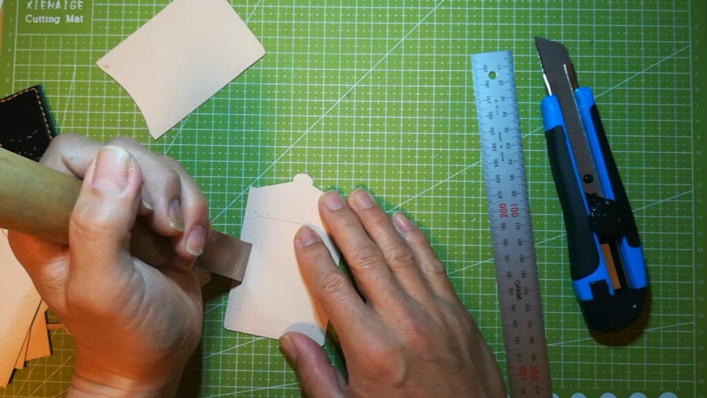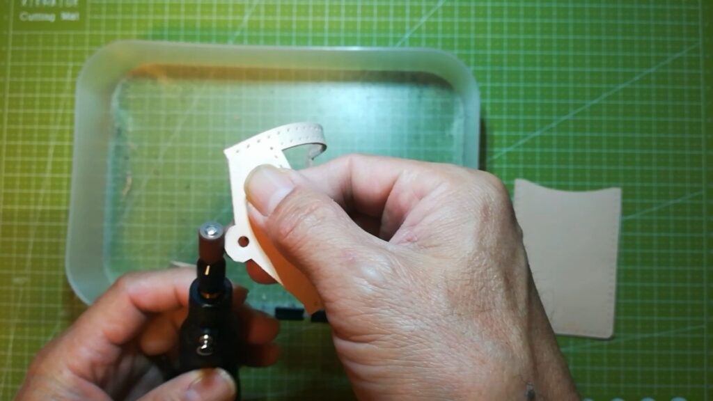 パーツが切り出せたら手縫い穴を開けコバ処理をします。