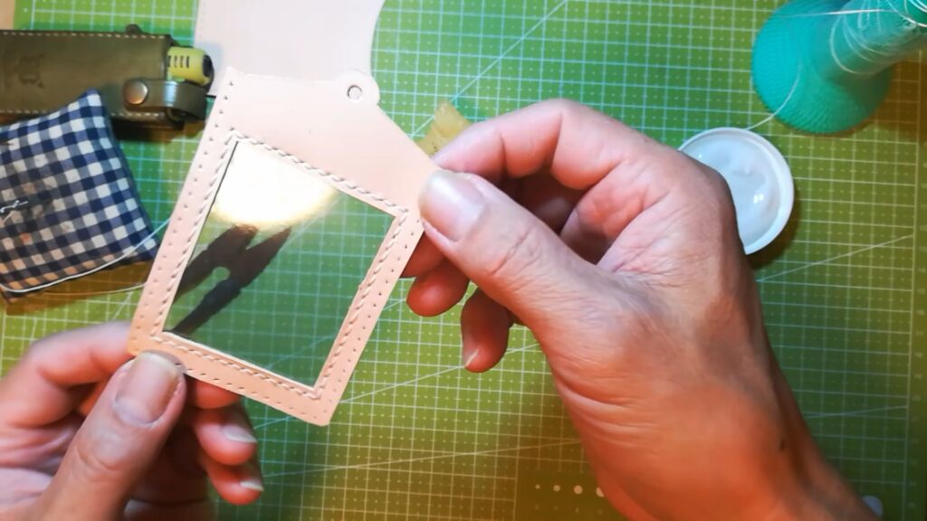 窓枠部分に使う透明のビニールを切り出し縫い合わせます。