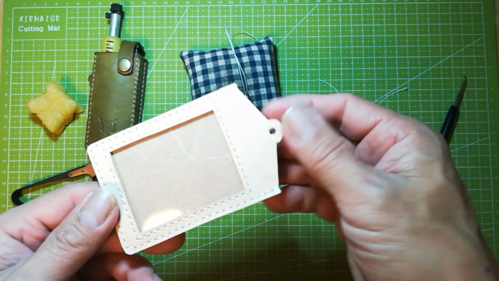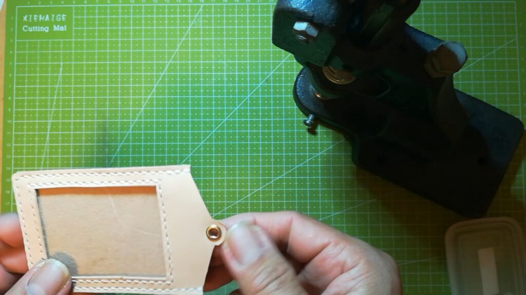 後はハトメを取り付け、コバ処理をすると完成になります。