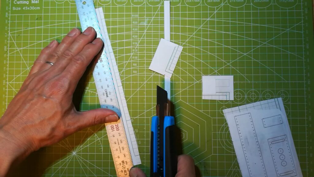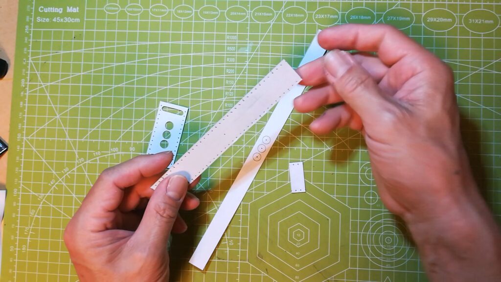 はじめに型紙を印刷して厚紙に貼り付けて型紙のパーツを作ります。