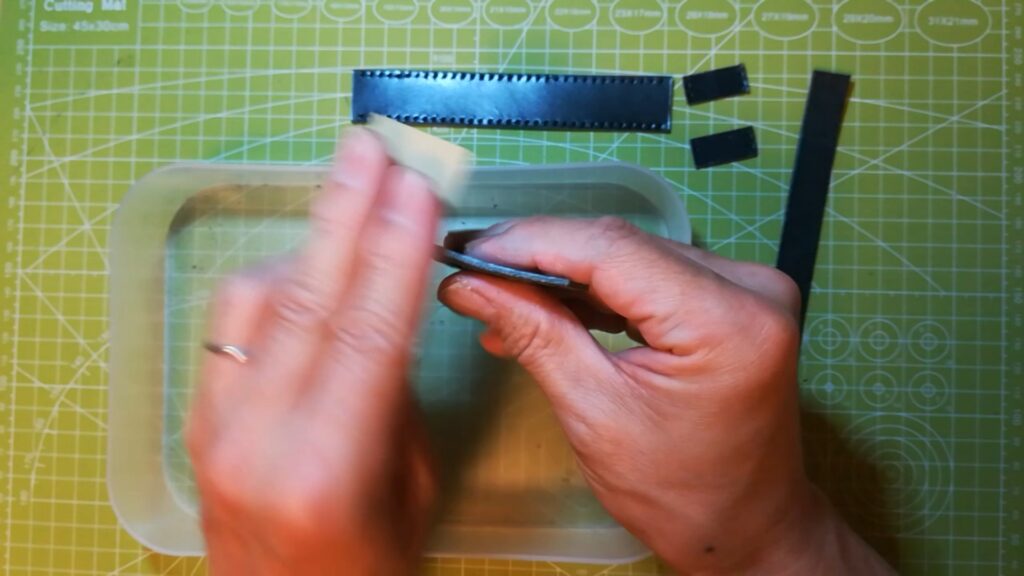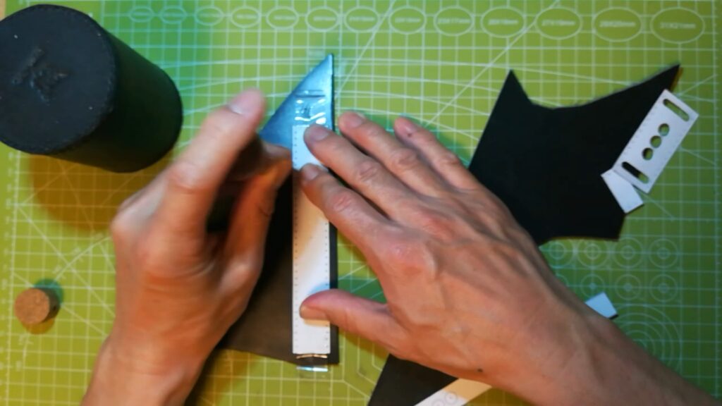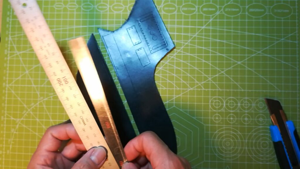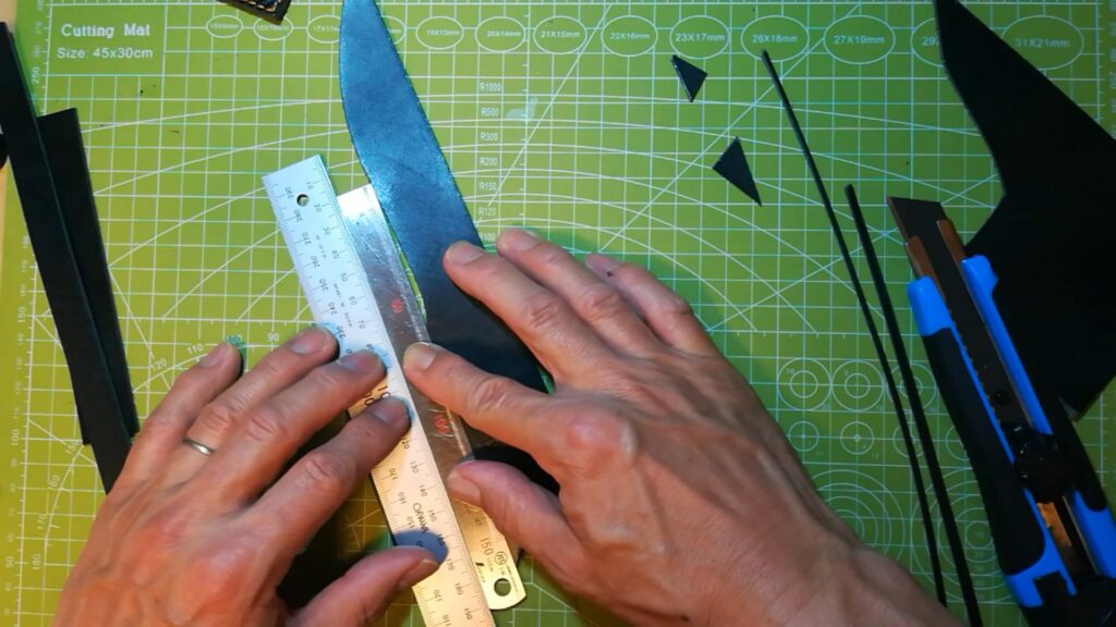 ケガけたら革のパーツを切り出しますが、直尺が二本あれば便利です。
