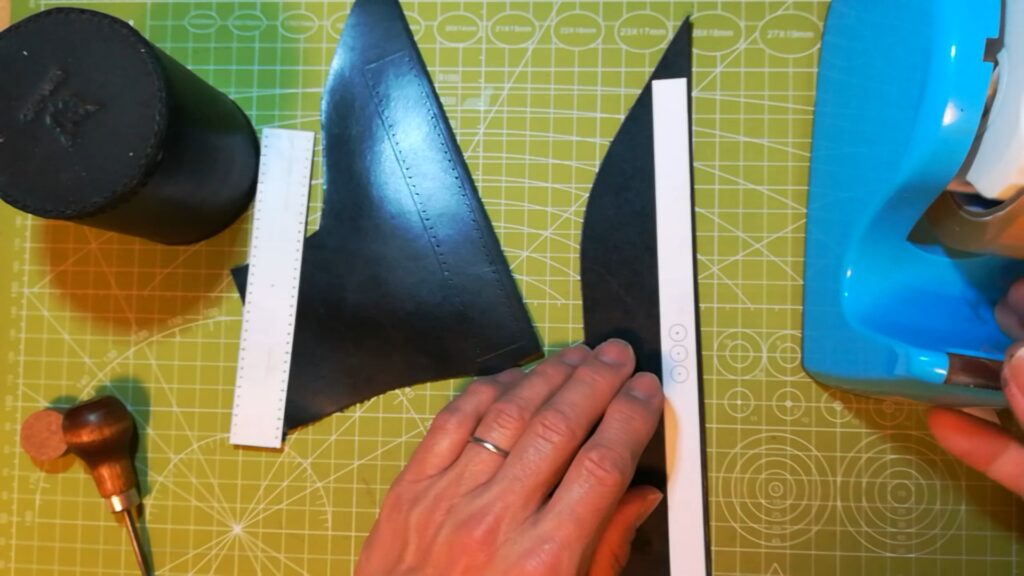 その後手縫い穴の点の穴を開けます。