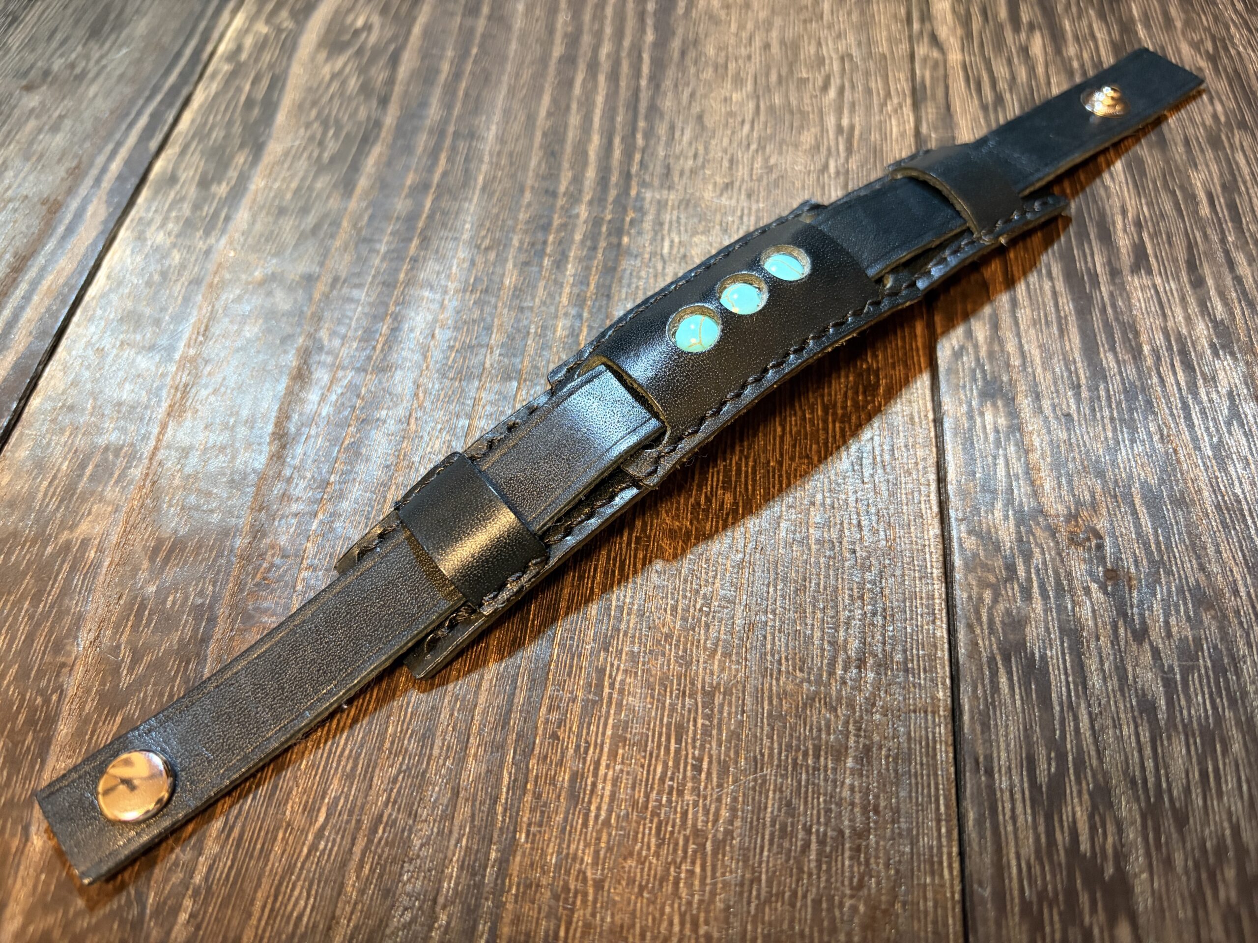 ブラックの革にターコイズの色って合いますよね。