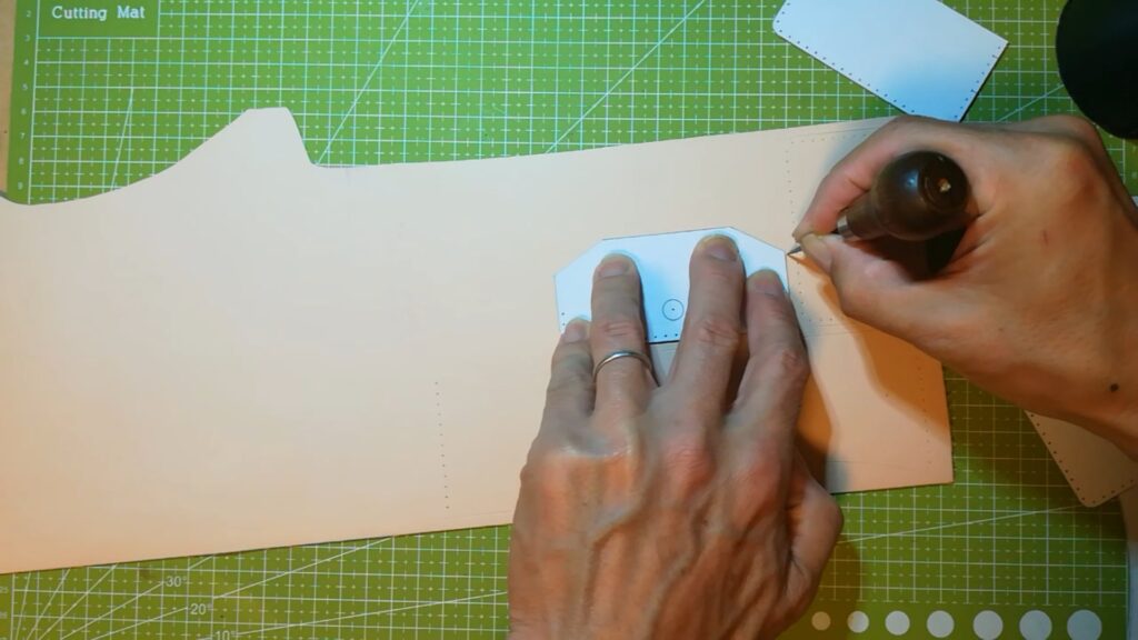 作った厚紙の型紙にある点を目打ちなどで穴を開けます。