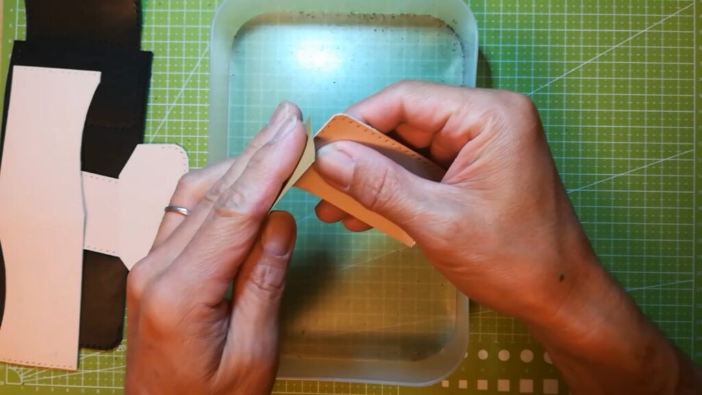今回は2mm程のヌメ革と1mm程のヌメ革を使用しました。