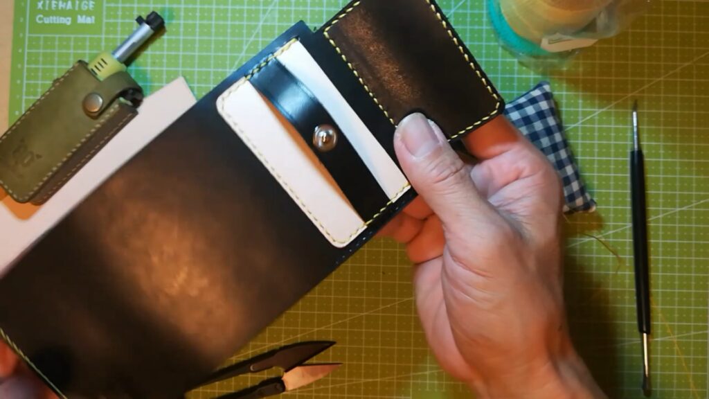 今回作ってみて分かったのですが、コインケースのフラップ部分がスムーズに開閉出来ないので
