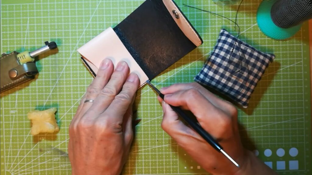 角にあたる部分は目打ちなどを使い丸い穴を開けます。